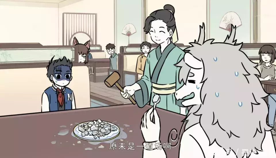 服务员拿了一把木槌,直接将瓷器敲碎。敖烈还以为这是一道汤,可是结果服务员告诉他们,这道菜只是给他们看看,并不能吃,录过视频就可以,敖烈和哪吒很是绝望。这种所谓的网红餐厅,哪哪都是噱头。